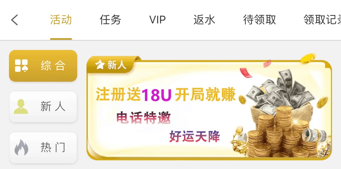 注册绑定活跃半年以上USTD提款地址是特邀自动送,18U分三天送12倍流水