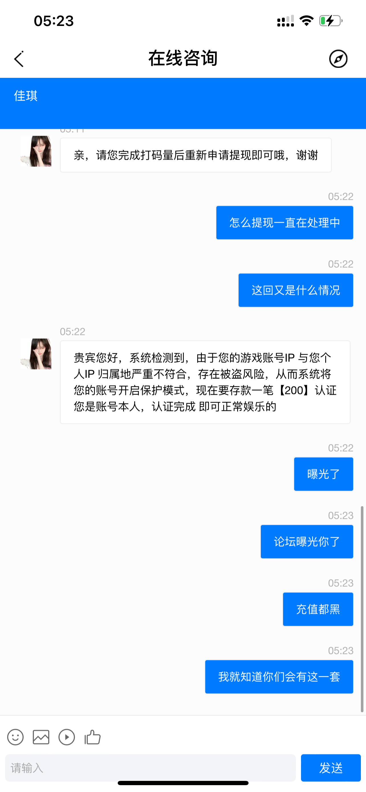 这鸡巴玩意天天骗充的,网址都不改就改名字,以前叫澳门百利宫   澳门巴黎人   现在又叫澳门澳门星际,提现让充值页面的回答都一模一样,充了再提还会让你充