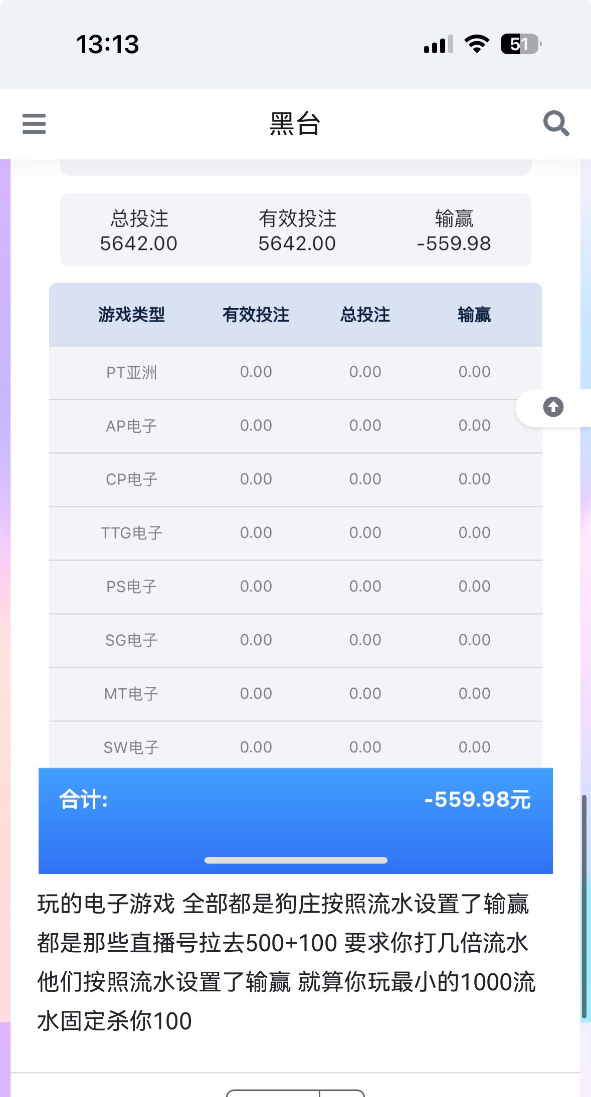 现在每个台都可以控制了 不是以前的pg了 他们按照流水设定了负利 你参加活动就设置更加难玩