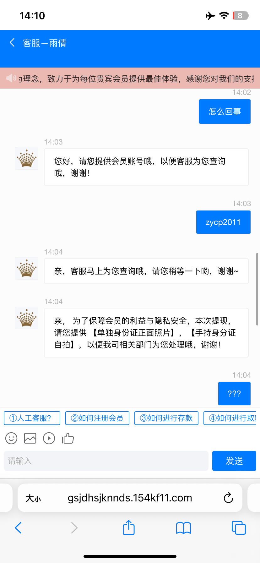 都玩了两三年的平台,现在也开始黑了,大家注意吧 存了140提520都黑。上传了证件和手持,又要视频。以前存50提2000都几分钟到的。无语。看来现在不能玩了,赢了300多块钱就开始这样了。