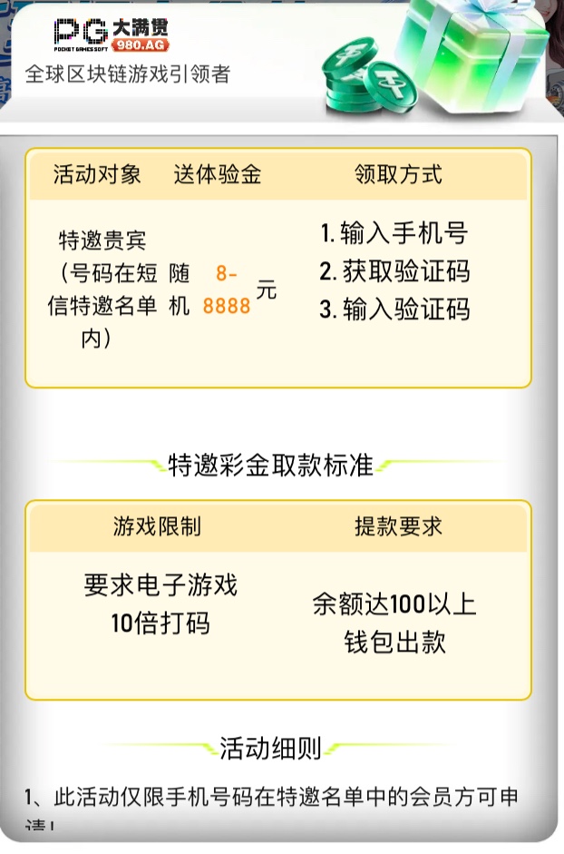 下载APP用手机号注册,完成注册后登入上去会有特邀弹窗,10倍流水电子打码,100以上取款