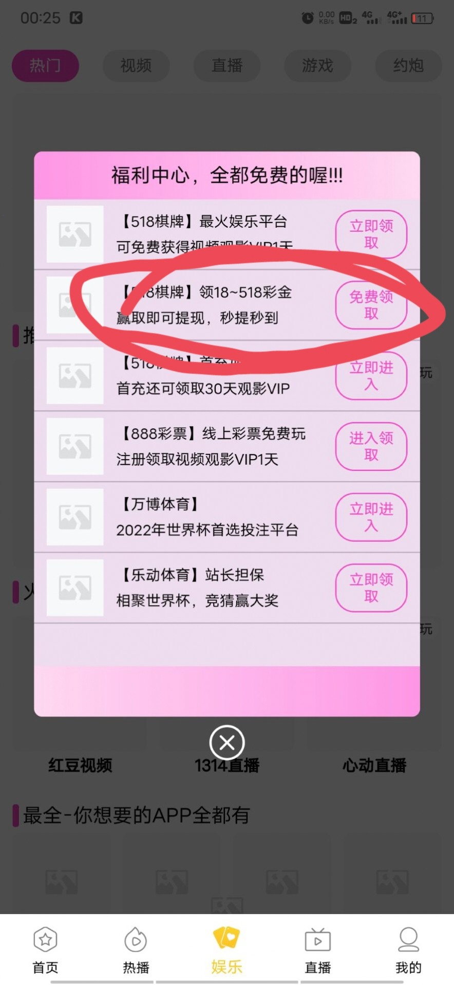 新用户下载app进去,不用注册直接点击娱乐,