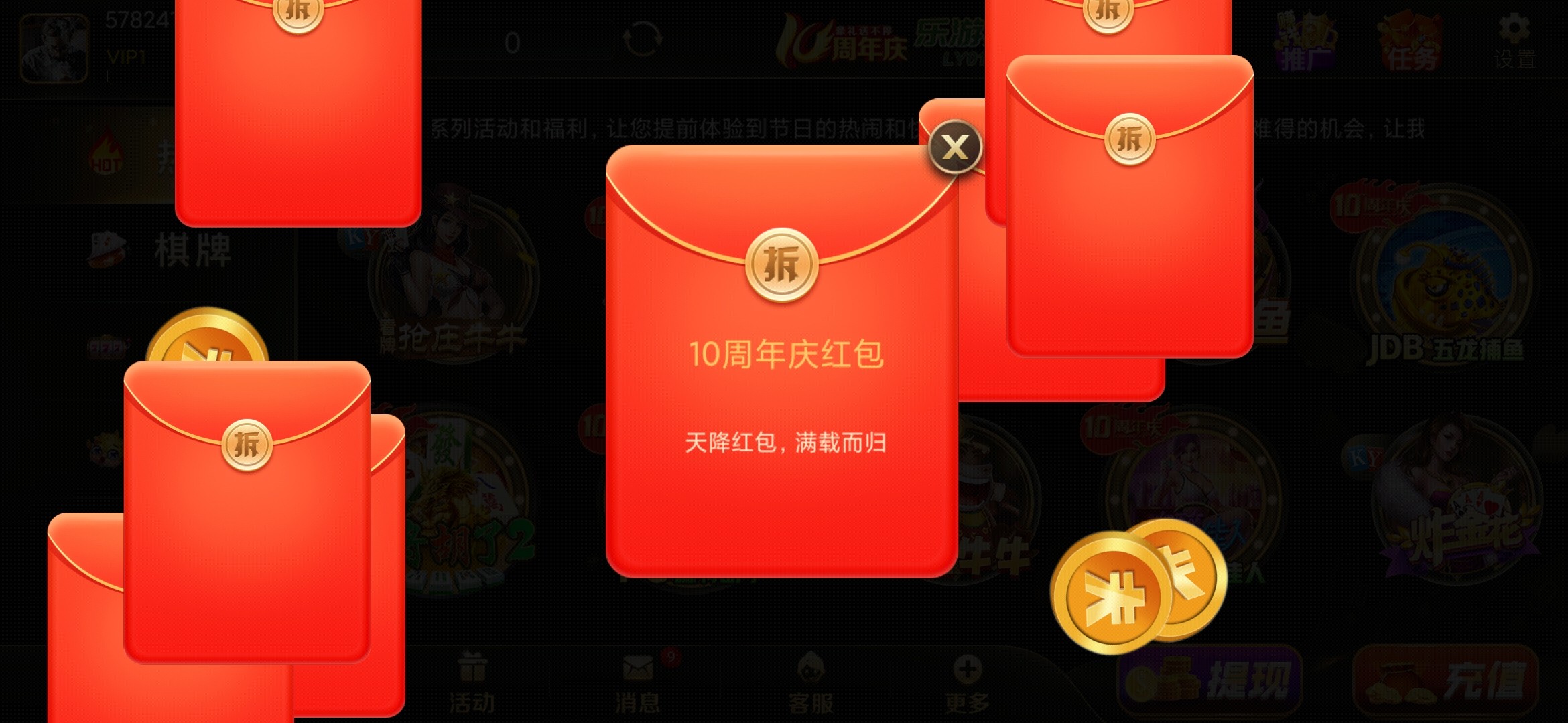 乐游棋牌十周年庆,有账号的登录老账号,22号开启砸金蛋,没账号的新注册,每日登录免费一次砸金蛋