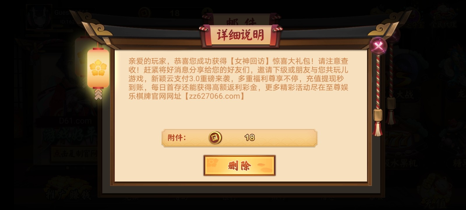 前天注册的今天打电话送了财神到2大水爆了一百多倍提了200不知道能不能到