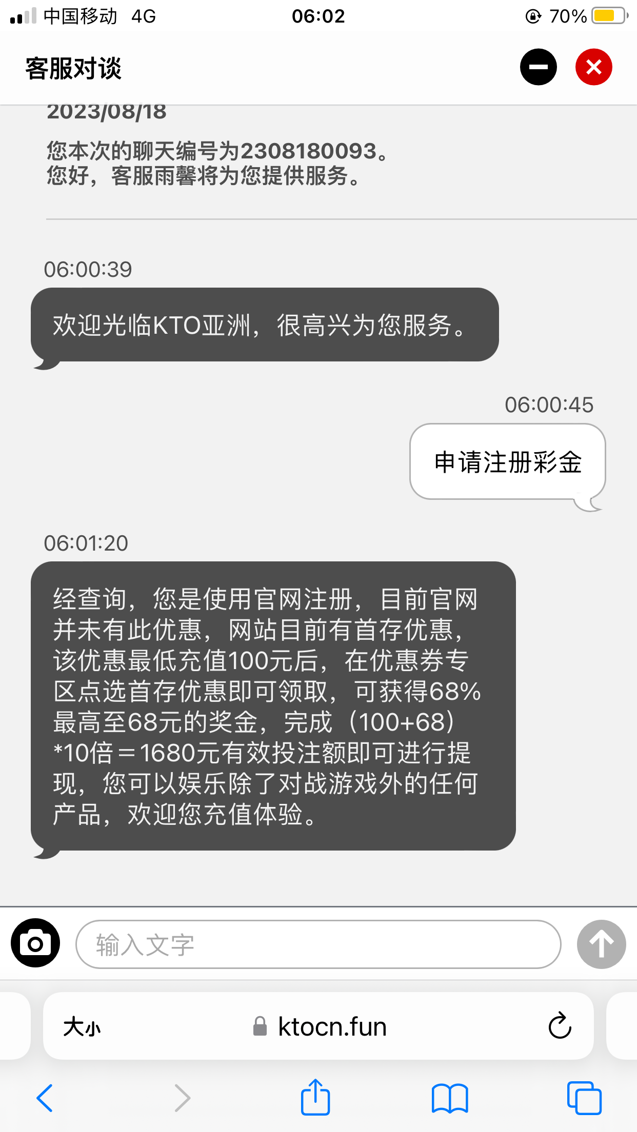 新用户注册以后在优惠券里面自助领取38彩金 每日限制50个名额 没名额了就第二天换号 游戏和提款限制自行询问客服