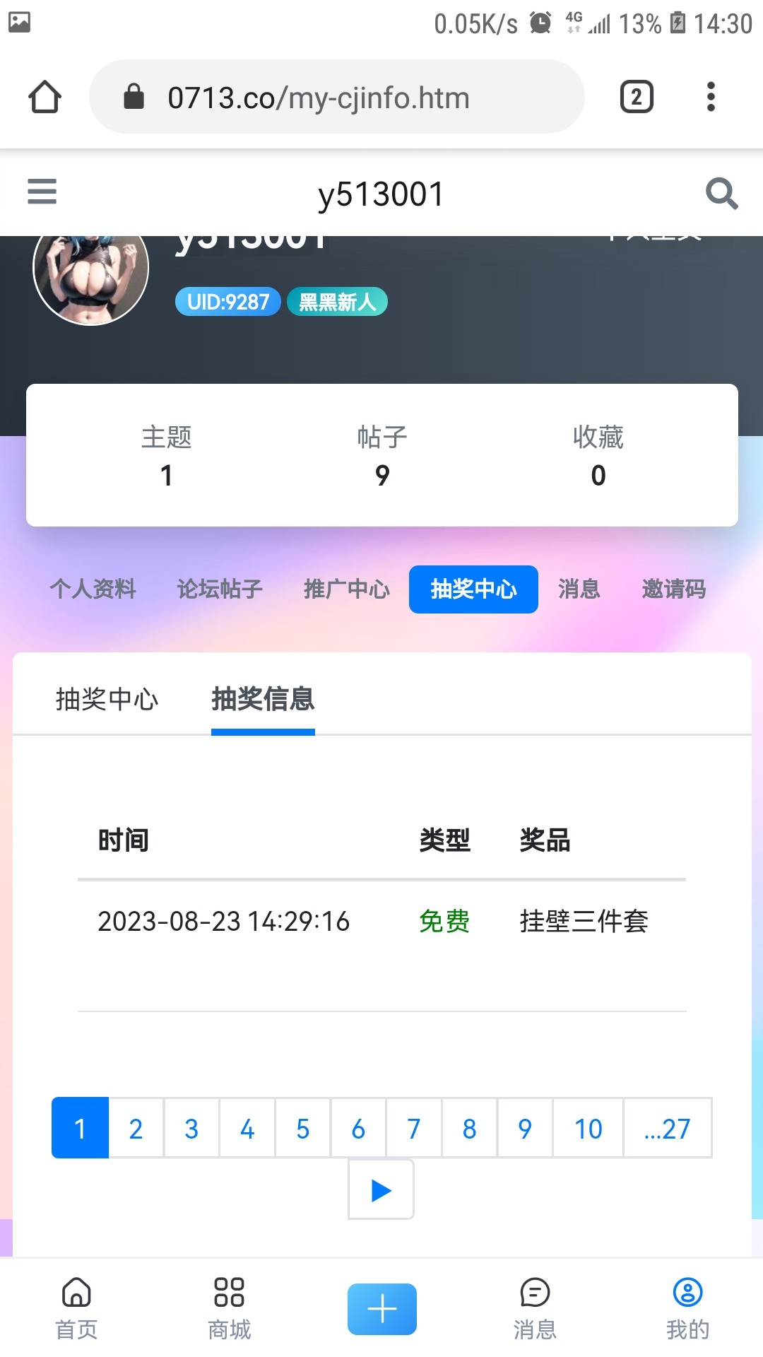 抽中了的截图抽奖记录图片要显示社区名字的,旺旺联系:7373227  ,提供一下问鼎用户名,28圈UID,NG体育用户名,壹号账号,领取