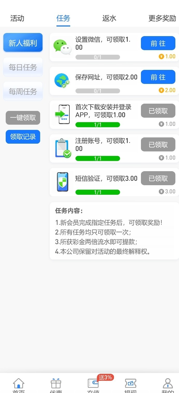 注册绑卡新人任务里领取