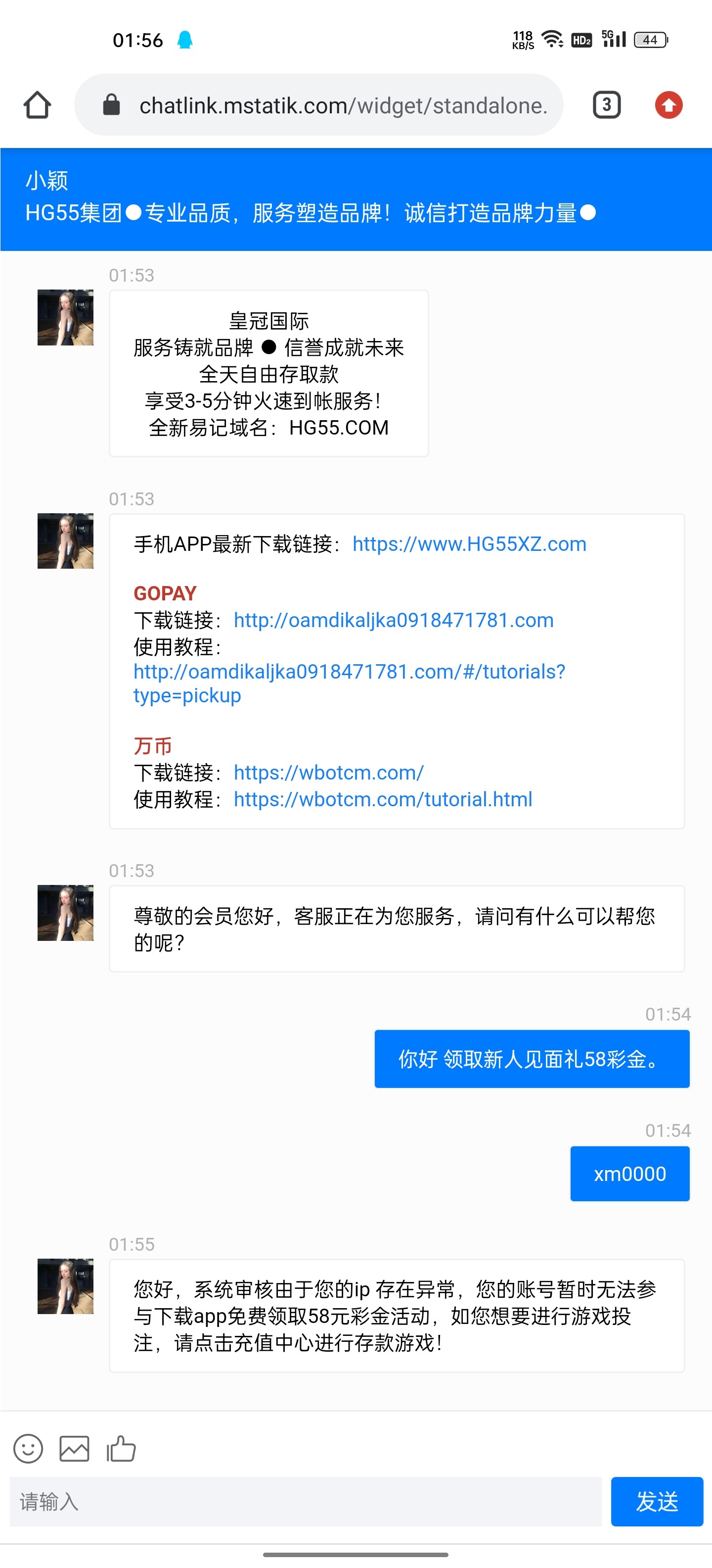 您好,系统审核由于您的ip 存在异常,您的账号暂时无法参与下载app免费领取58元彩金活动,如您想要进行游戏投注,请点击充值中心进行存款游戏