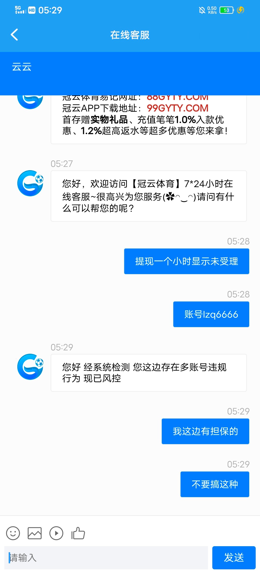 千万不要玩一点格局没有裸打1100直接黑就是不想给你出 给你退个本金让你以为他们平台不黑钱 赢了就说多账号 输了怎么不说多账号给退本金