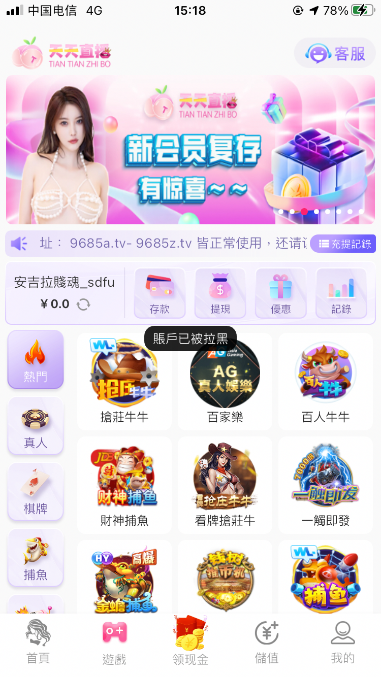天天直播一个最没有格局的台希望大家不要去玩,无论你是充值还是免费彩金百分之九十九都会被黑!