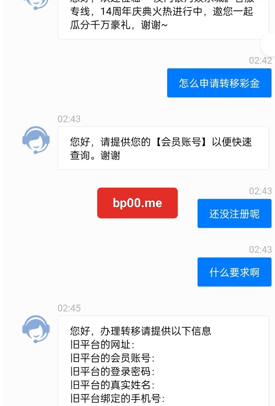 转移了,没送彩金