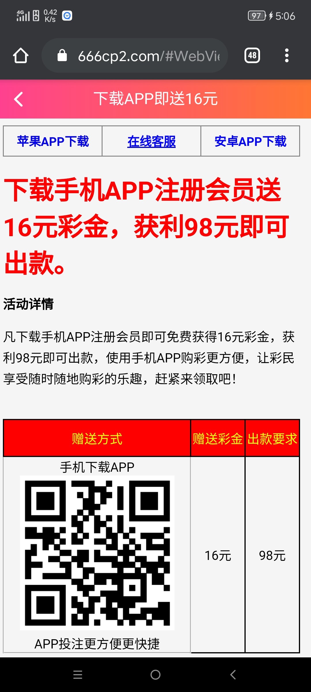 注册绑卡,下载APP,联系在线客服,申请下载APP彩金。满98提