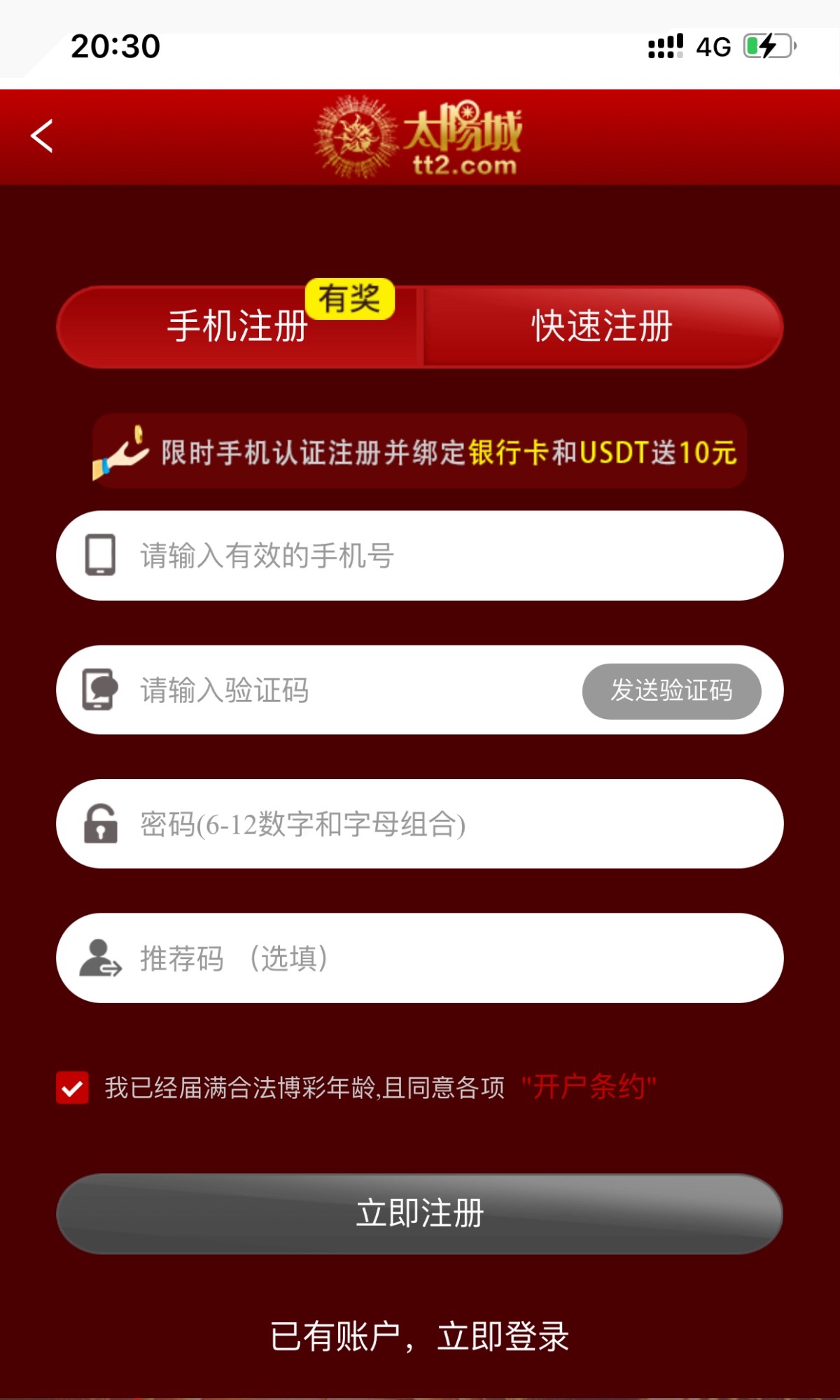 手机号注册 绑定银行卡和usdt 送10