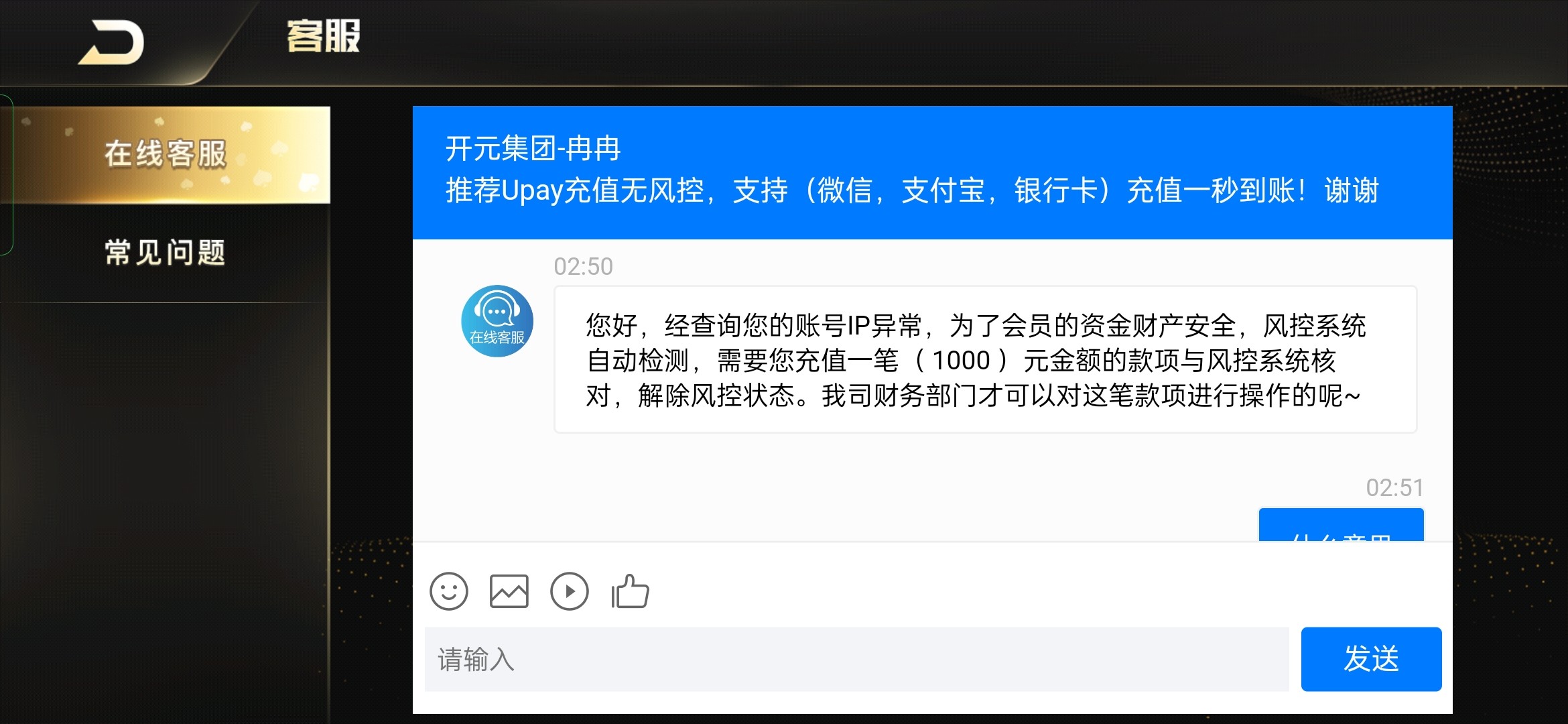 就不明白了,你都充了100,他还让你充,这不就明摆着黑吗,这还用发个帖子问,你脑子想啥了?