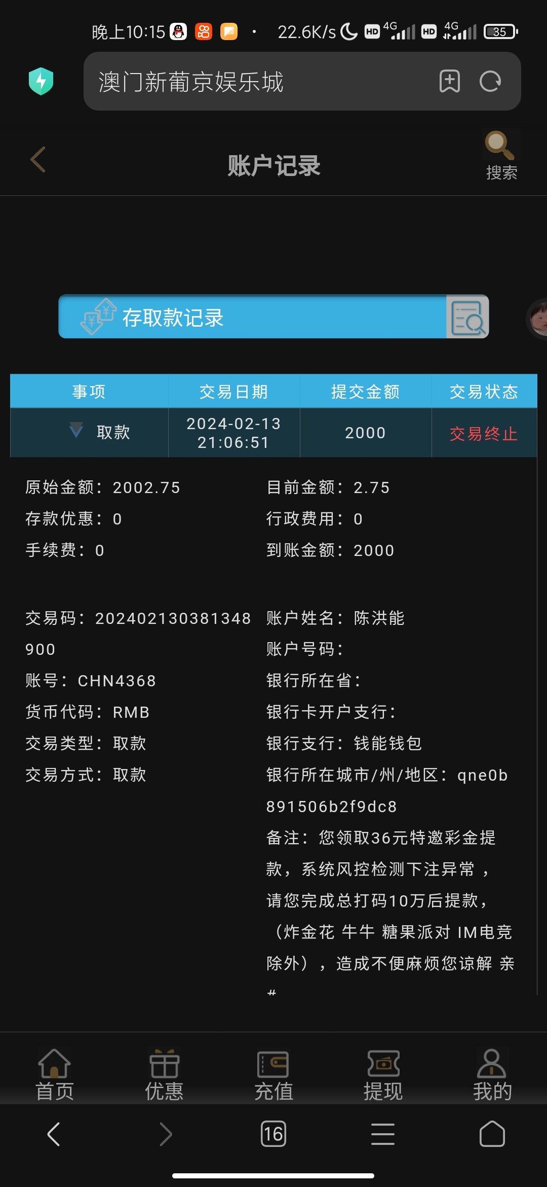 澳门新葡京4656 提现850各种借口加流水1万打够了赢了1400提现平台急眼加5万流水 打够5万赢到2000提现继续追加我10万流水《我不是赌神2000打不了10万》 客服说pg免费旋转不扣金额不给提现《pg旋转出免费旋转还要扣钱吗?这种野鸡台的台词平台各种玩》 财神捕鱼打免费炮说下注0单注异常 《看我发的捕鱼炮弹介绍》此平台链接4656.com慎玩 赢小额200就提切记超过600必加流水各种黑想赢大钱的谨慎此野鸡台没格局客服聊天截图我发下面了各种恶心三句名黑台请慎重,且玩且珍惜,远离赌博。