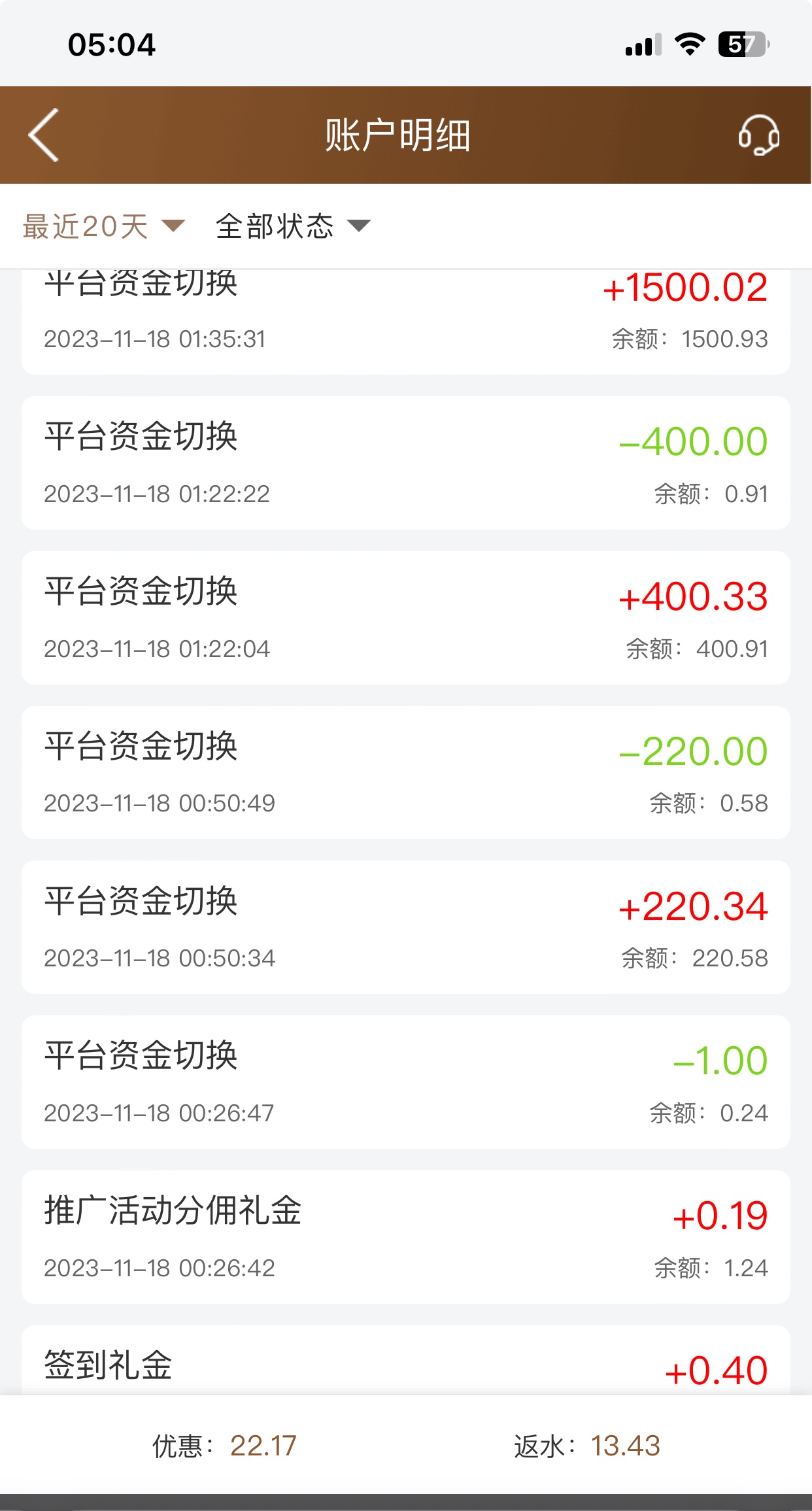 都是睡觉的时候来电话进去看还真有十倍流水提了300秒到