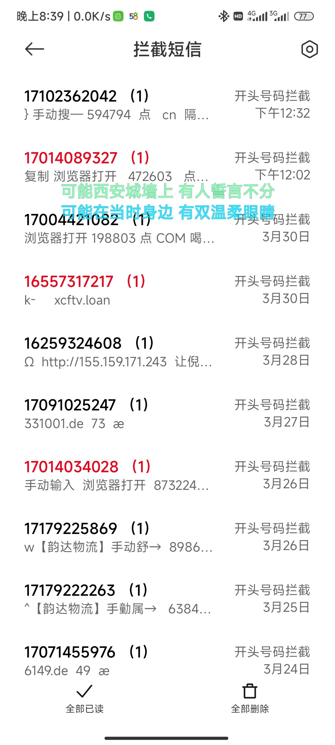 我也是每天几十条,骂也没用,真的烦