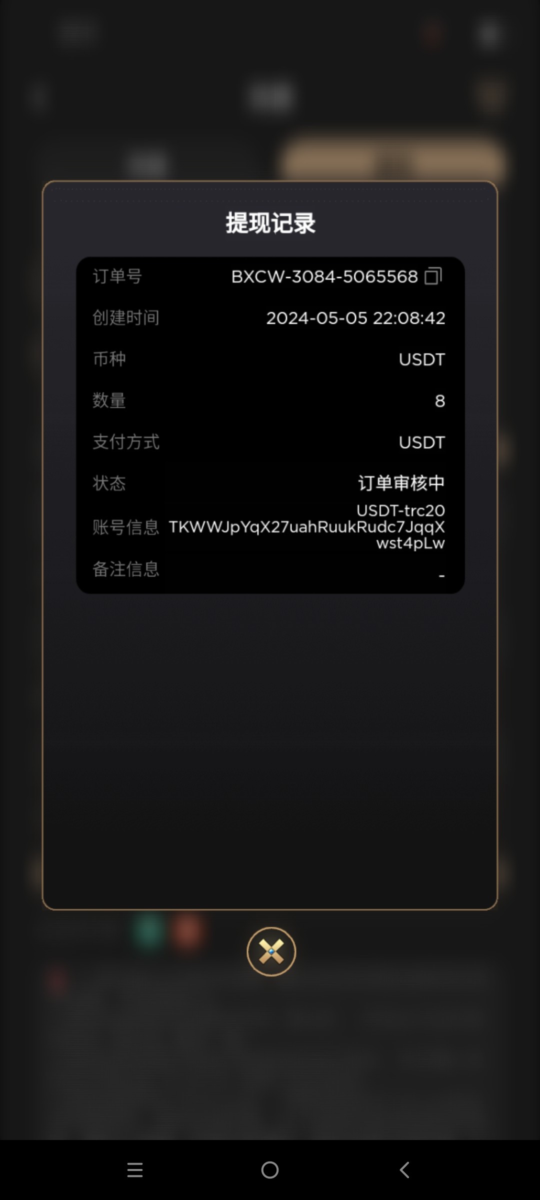 不知道到账不,自提8USD