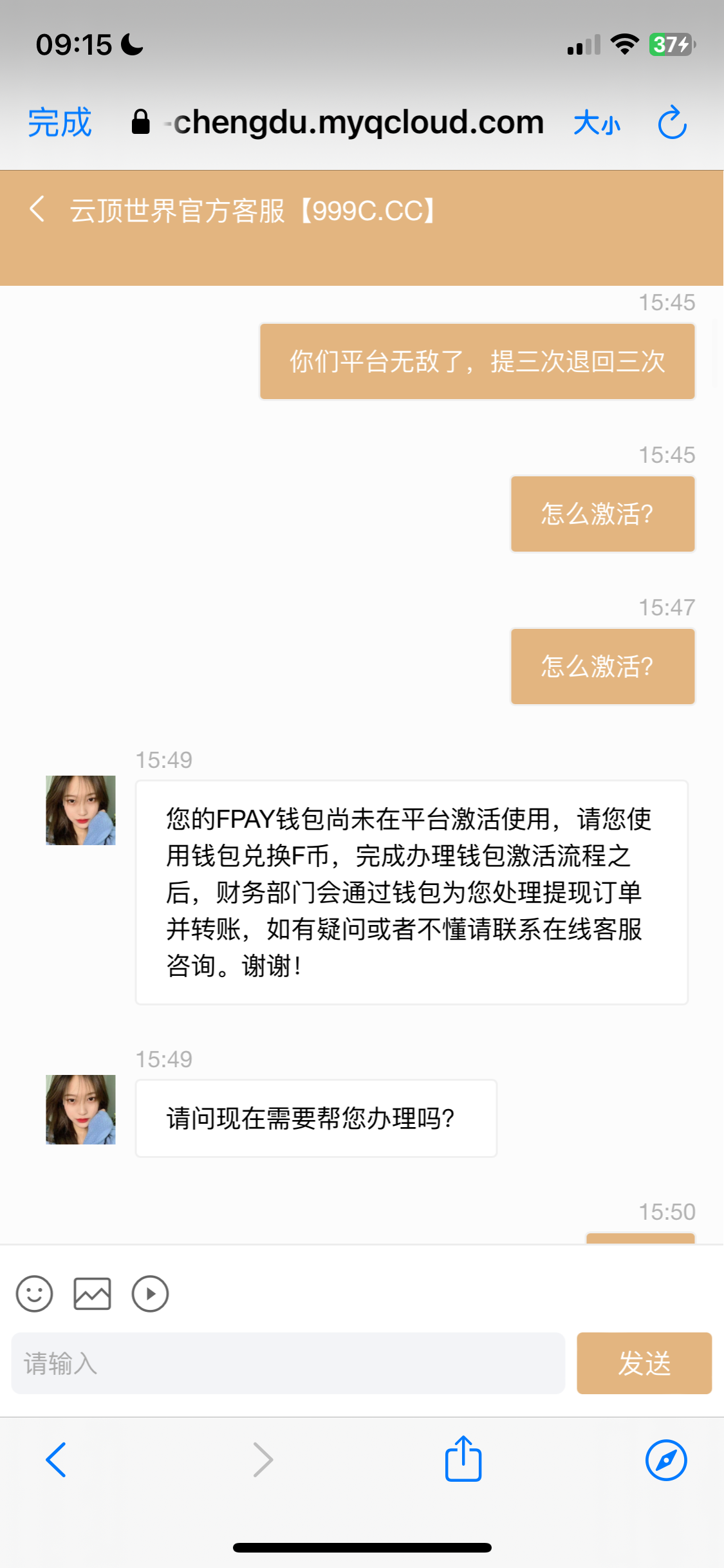 充值600本金盈利几百不给出款!提银行卡显示近期无法银行卡出款,然后各种虚拟币钱包下载认证通过,绑定以后提现又说多次向我钱包转账,转不了,需要激活费296元,我傻傻的信了,说296激活之后百分百出款!支付以后,我重新发起提现,又说296是激活钱包的费用,然后又要激活钱包收款地址418元,能出款的平台会有这么多理由各种费用?可笑的是,我从别的平台提现到钱包都到账了,而这个云顶世界这边还讨要激活费