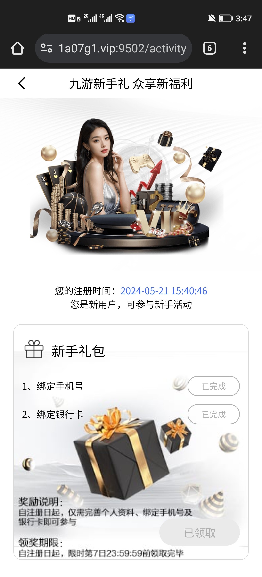 注册绑卡新人活动里自助领取,十倍流水提现。
