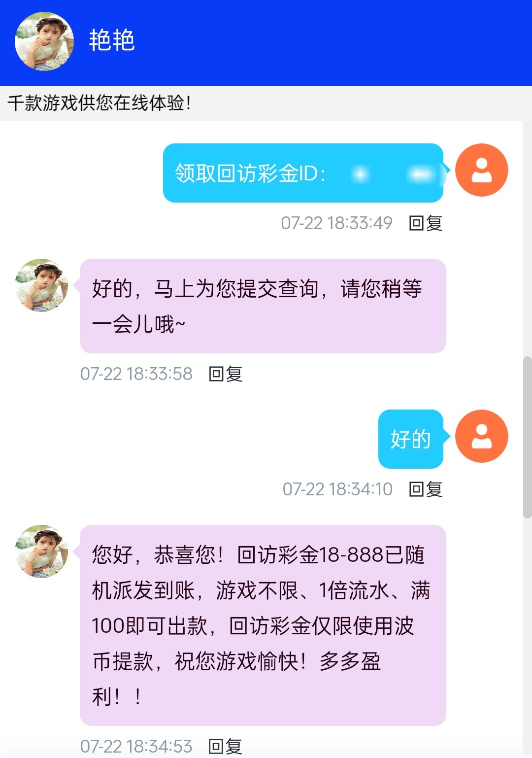 碰瓷回访最低18-888彩金一倍流水,复制ID去联系客服领取