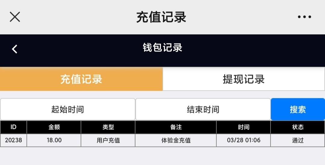 微信扫码进去点击充值 选择体验金通道 输入18元 然后点击提交等待到账