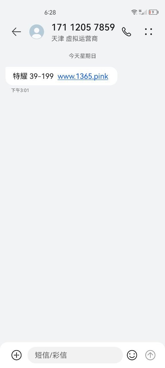 短信内容:特耀 39-199  www.1365.pink