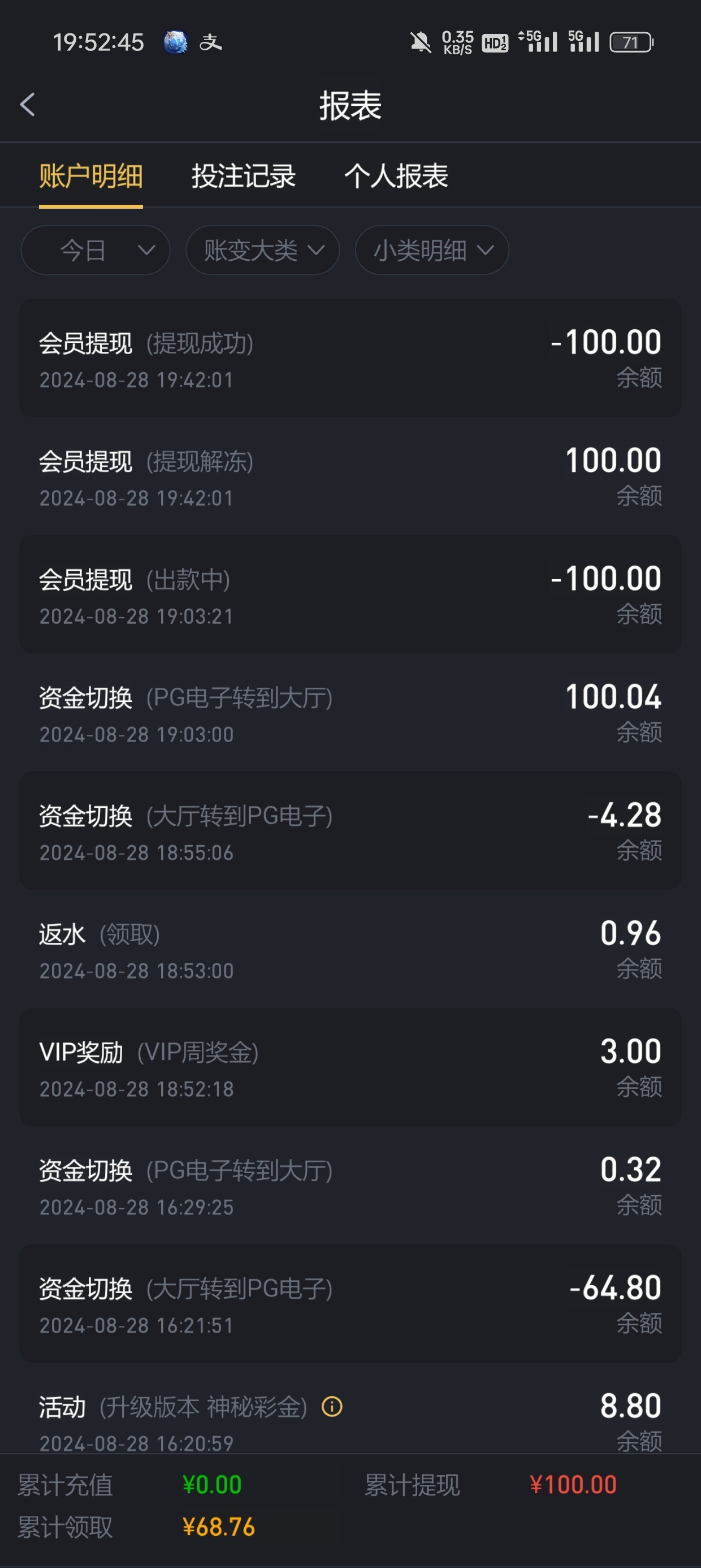 16干到800多 为了能提充100 然后到账了800