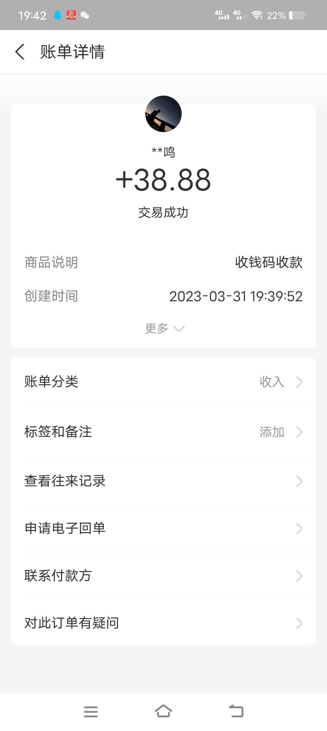 两把小单38.88到账