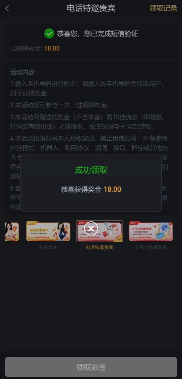 新普京566特邀玩家18-888完成绑定信息验证手机号 获取验证码即可领取