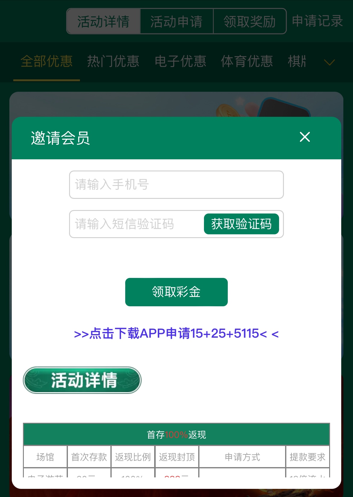 下载APP注册,绑定银行卡完善资料,优惠里申请,15彩金要盈利150/25彩金要盈利225限电子棋牌捕鱼体育