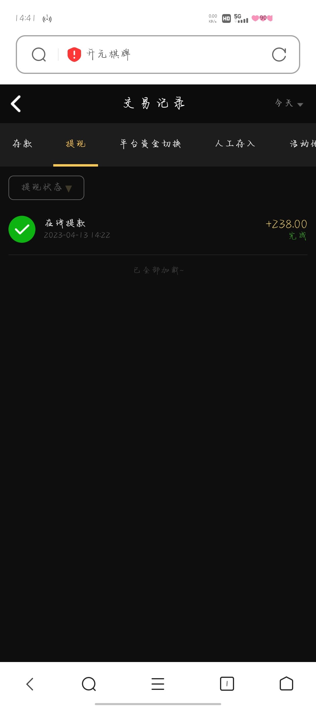 有没有到账的人?   一个半小时了一直审核  我又没充值过  感觉多半黑了