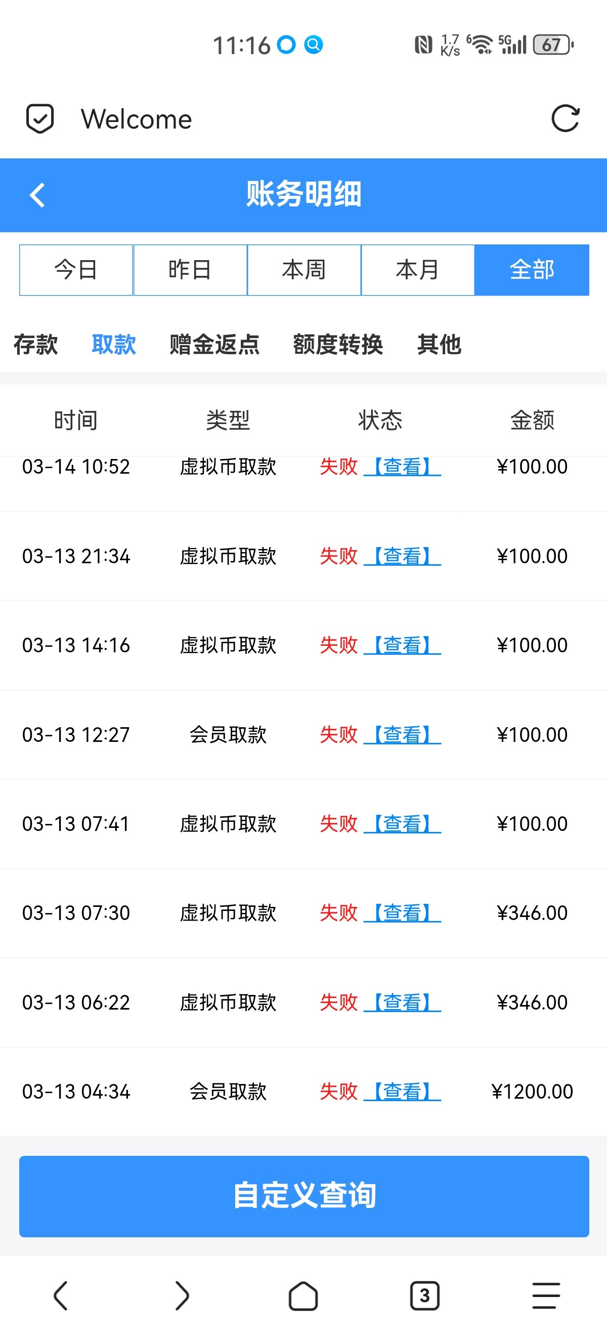 17:40雨涵您好,经查询您的账号被系统随机抽中进行注单审核,注单审核是系统的正常程序。注单审核需要在会员中随机抽取12%至35%依次进行,审核内容包含对打、套利等违规操作。审核期间您的账号暂时无法提款,请您先耐心等待,相关部门会尽快审核完毕做出处理的,感谢您的配合!奶奶个熊,送了88,提100都不行了