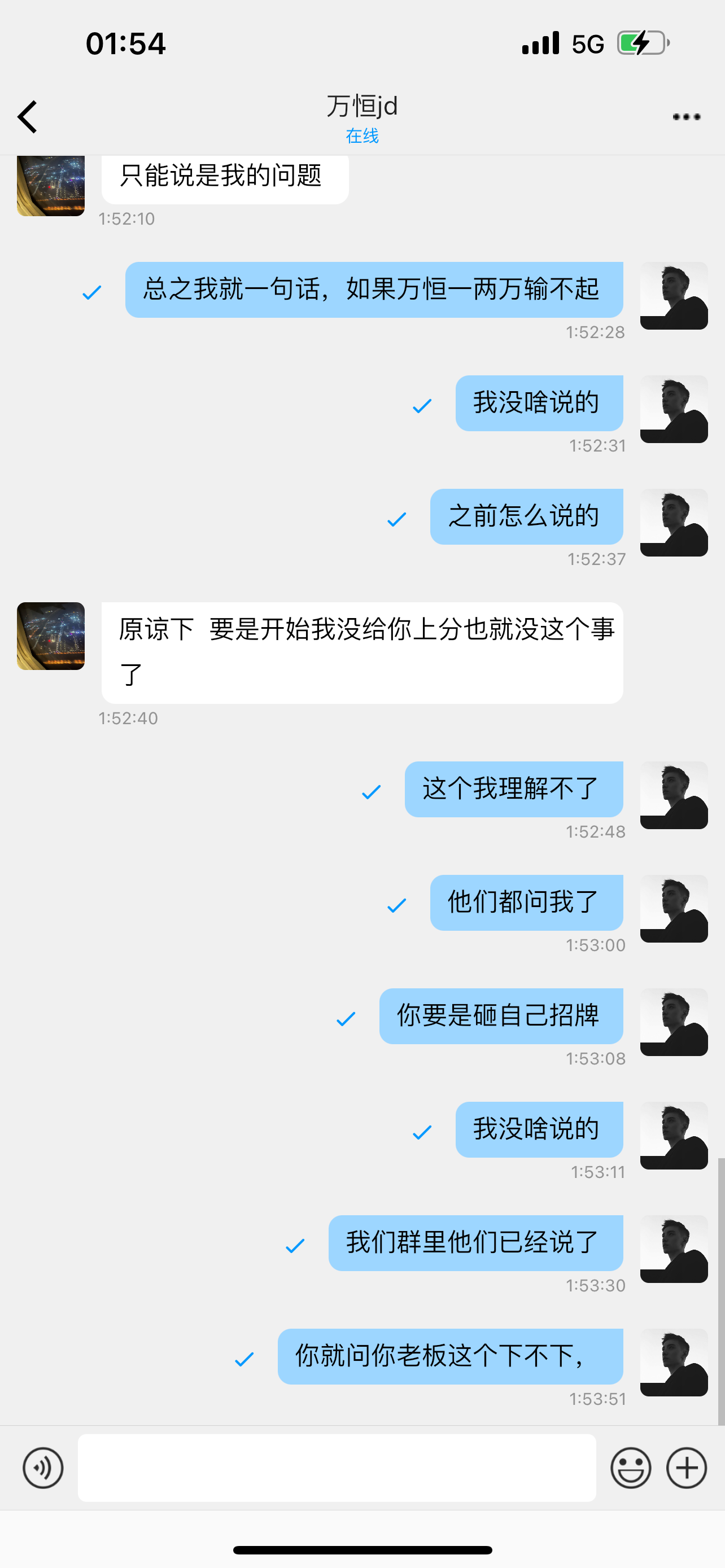 一开始我上分打到三千七,然后我去下分,他说卡怎么怎么样,最后下700给我三千说第二天下午给我下,完了一开始我没多想,后来凌晨我又玩了几把,打到了3680然后就私聊我说,我赢了一万了,剩下的不下了,然后就是各种找借口说他们老板不让我玩,然后说自己没注意我上分,你是眼睛瞎了么?不让我玩你还给我上分,然后就鲨鱼了,也感谢黑黑社区群里的兄弟们,都去问他,骂他,然后反转来了,说我对压,违规下注,咱们直接上图,兄弟们,嘴硬上图是最有效的,说我对压,你狗庄眼睛真瞎了。  还有最后说一句,感谢社区的兄弟们,玩2.8还得去认准大台子。