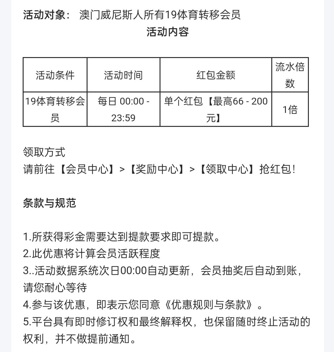19体育与威尼斯合并转移彩金,具体账号规则看下面文字,老用户登录最低领66红包,具体自测吧,有点麻烦勿充值。