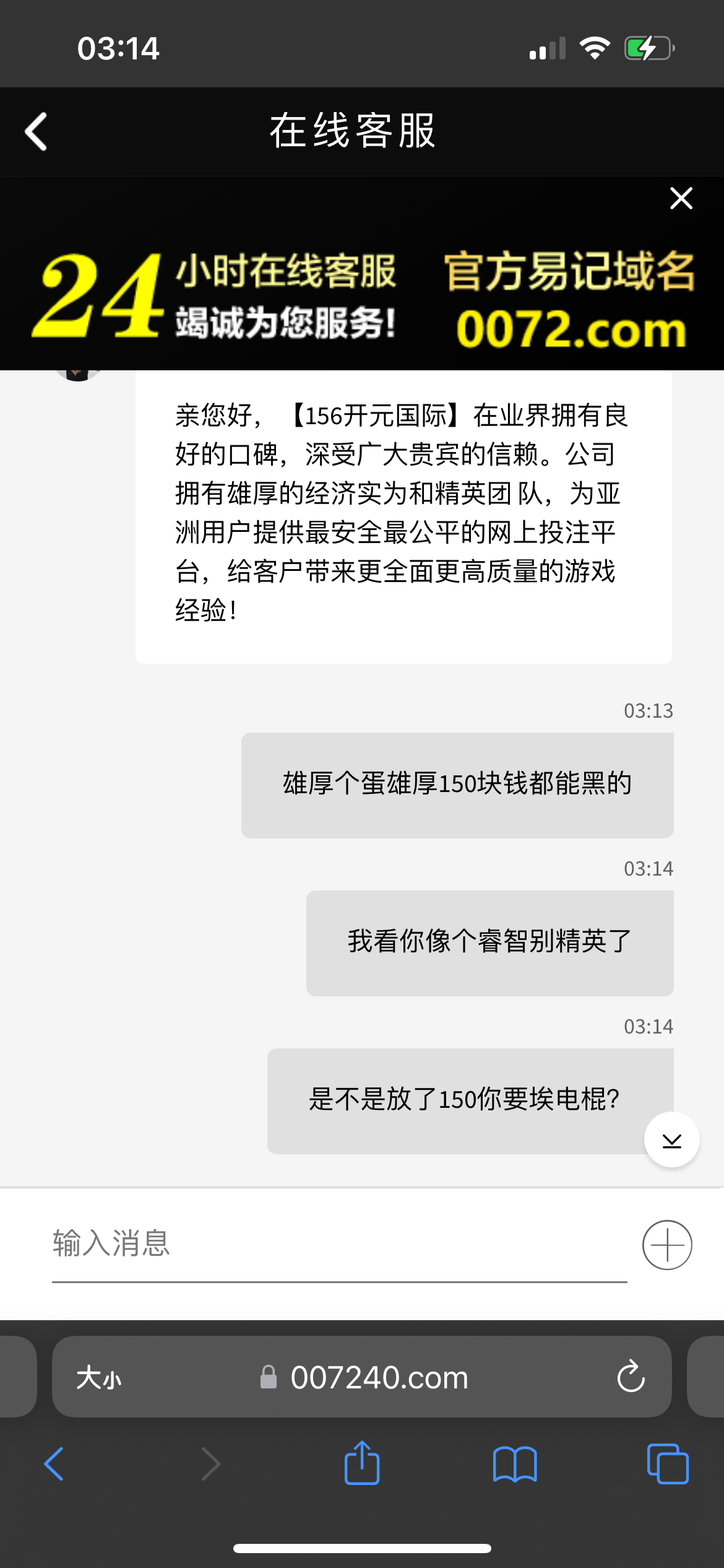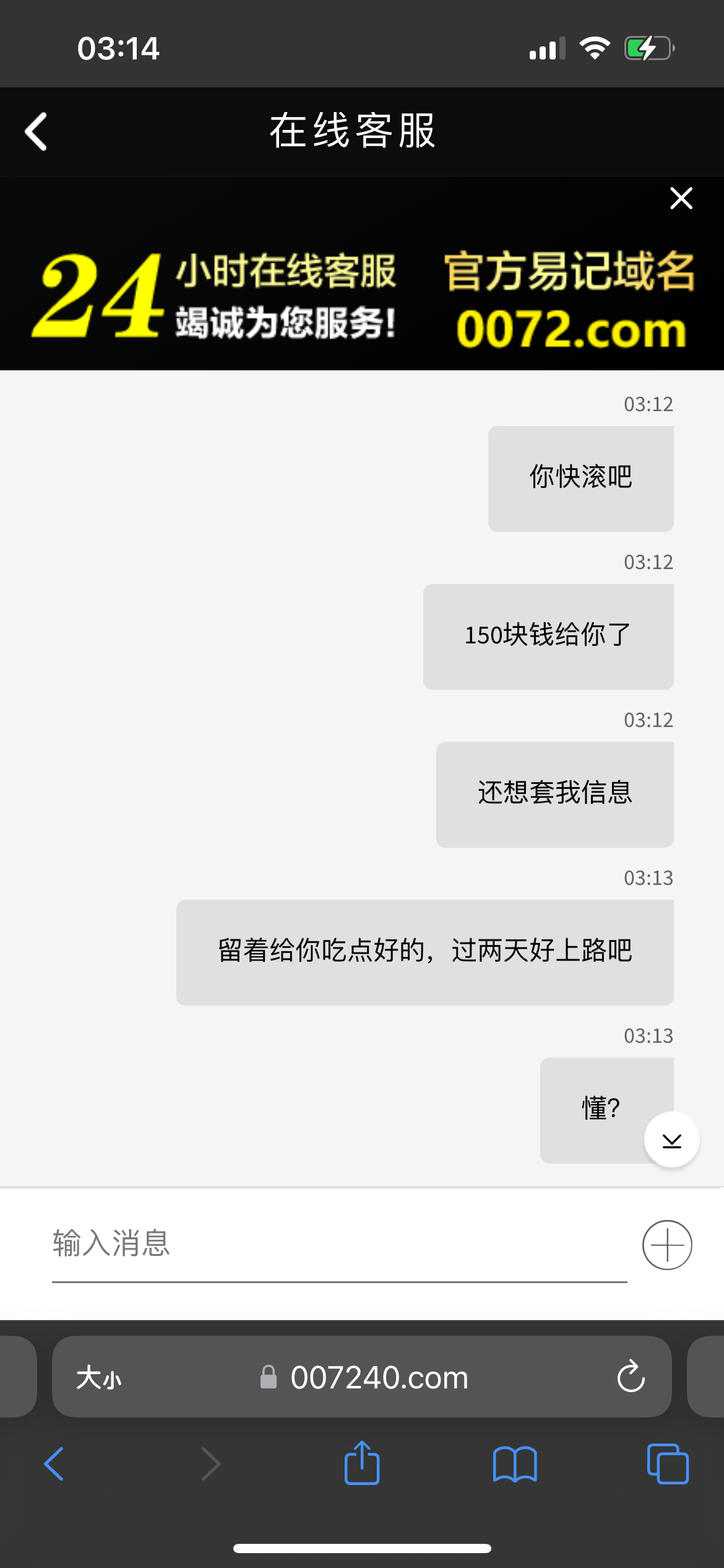 前面一百给我出款然后又充了50打上200想走了直接冻结,还想套我信息,这150就当喂狗好了,各位短信来的野鸡别搞