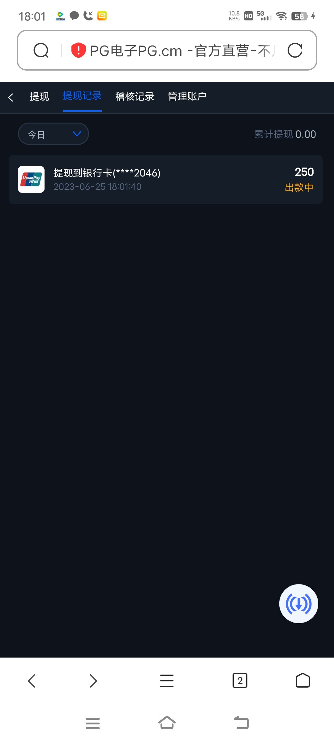 没希望了。半天一直出款中
